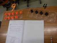 式は9+4ですが,とちらが9,4なのかと聞いてみると,正しくとらえていました。簡単なことのようですが,操作したことと,図や数で表したこととをきちんと対応させることはとても大切です。