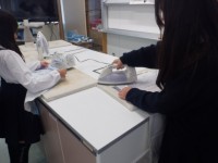 縫いあげて完成に近づいている人が増えてきました。自分が作ったエプロンを切るのはとても楽しみですね。