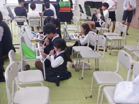 鍵盤ハーモニカの担当の人たちも,練習に余念がありません。