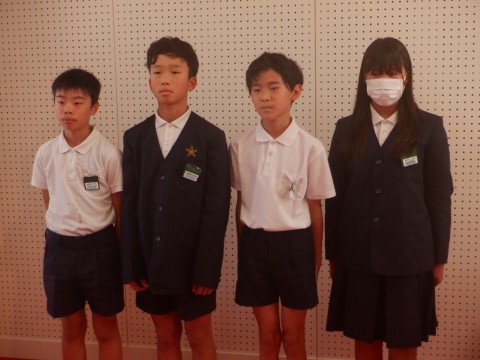 連合運動会に出場した6年生の代表の人たちから,在校生のみんなにメッセージを伝えているところです。目標に向かって努力し,当日も全力を発揮して成果を得ようとした経験をもとに,後輩たちにもそうであってほしいという気持ちが伝わってきました。
