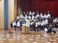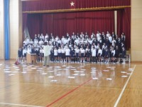 パート別のアルトの練習です。体を動かすことで,リズムや音程がとりやすくなったようです。