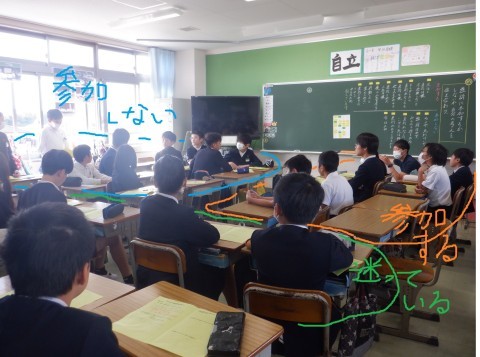 10月31日に本校で「にんげん学習交流会」が行われます。福田小・西陶器小・東陶器小の6年生が集まって,人権について考える学習の場です。その時の題材にするのが,幕末に岡山藩で起こった「渋染一揆」というできごとです。着るものや行動など様々な点から差別を強いられた人々が立ち上がり,藩の家老に強訴するのですが,この場面では,自分なら強訴に参加するのかどうか,その理由は何かについて考え,交流しています。