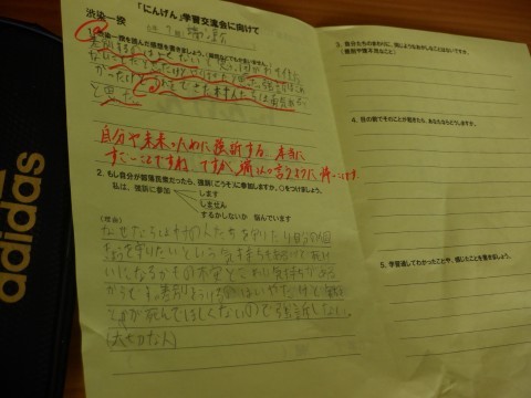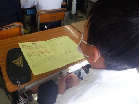 各自の考えはワークシートにまとめられ,先生からのコメントも入れられています。