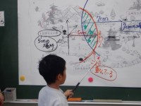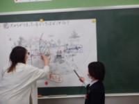 そこで,コンパスを使って,A地点を中心に半径5cmの円を,Bを中心に半径7cmの円を描きました。2つの円が重なっているところがあやしいとにらんでいるようです。