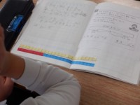 2年算数の学習です。たくさんある米粒を,まとまりをつくって数えています。