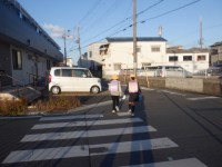 今朝の登校の様子です。風があるので,気温以上に寒く感じます。