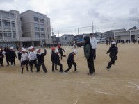 こちらは4年生です。跳ぶ人に合わせてうまくなわを回しています。