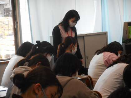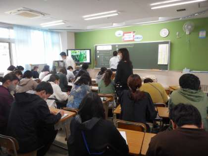 先生が一人一人のノートの中身を読み取って,黒板に書くように指示しているところです。