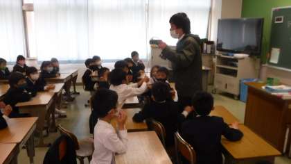 2年4組 お馴染みの自己紹介 公開日 2021/04/08 更新日 2021/04/08 2年 担任の重松先生おなじみの自己紹介をしていました。 黒板にはたくさんの写真が貼られ,とても楽しそうな雰囲気でした。