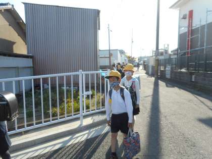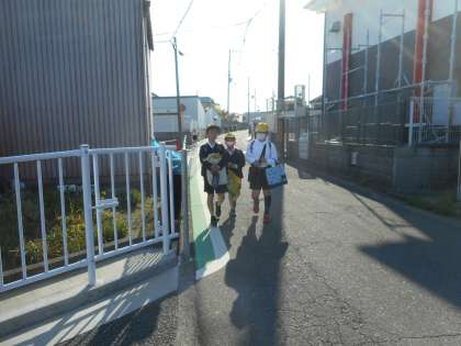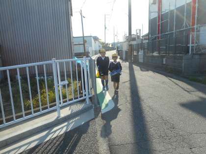 朝の登校の様子です。今日もいい天気になりました。