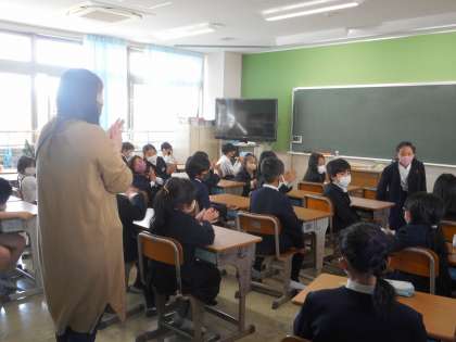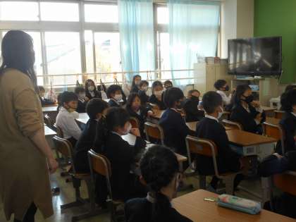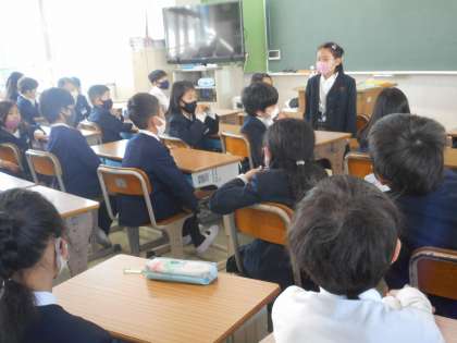 2組の様子です。自己紹介をしているところです。みんなに向かってしっかりお話ができました。温かい拍手がおくられています。