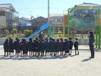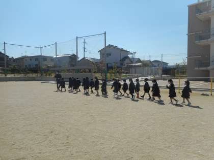 2組の様子です。運動場のいろいろな場所の使い方を勉強しました。