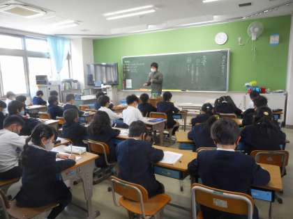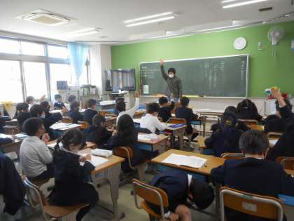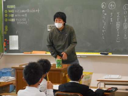 4組の様子です。先生から明日の予定を聞いています。明日からは給食が始まって,6時間の学習があることを聞きました。