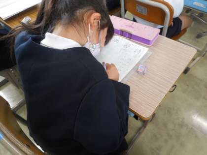 2組の様子です。漢字の学習をしています。ていねいな文字で練習していました。