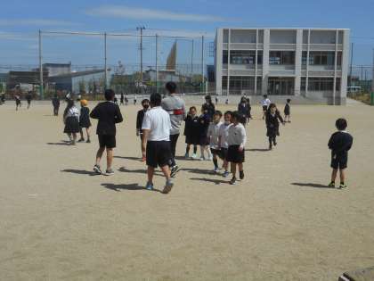 今日もいいお天気だったので,たくさんの人たちが先生といっしょに遊んでいました。