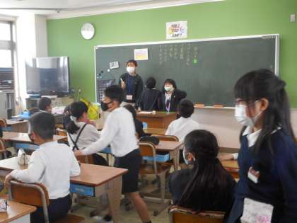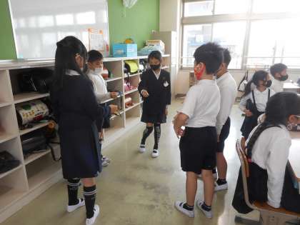3組の様子です。明日から始まる給食の当番を決めていました。