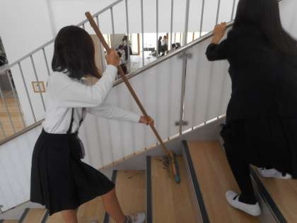 そうじの時間 公開日 2021/04/13 更新日 2021/04/13 学校からのお知らせ ほうきの人とぞうきんの人が連携して,階段をきれいにしていました。そうじは久しぶりなので,ぞうきんが真っ黒になっていました。