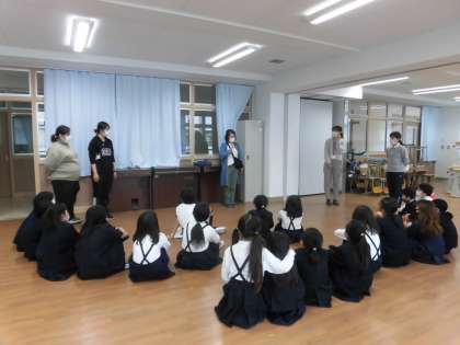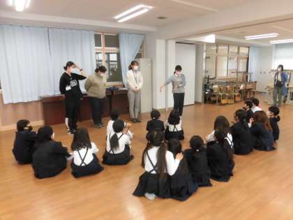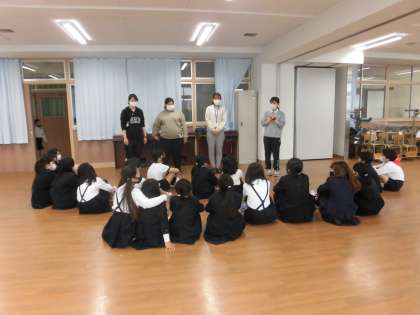 音楽隊が多目的室に集まって、今年度の練習ついてのお話を聞いていました。
