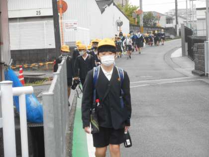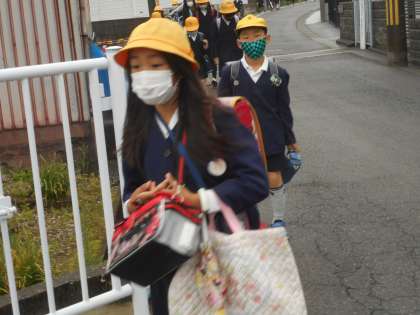 けさの登校のようすです。荷物が多い人もいるので,雨が上がってよかったです。