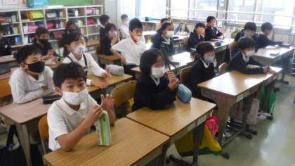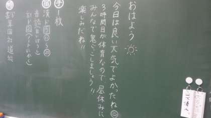 4年3組 日直について 公開日 2021/04/15 更新日 2021/04/15 4年 朝の時間を使って,日直のしかたについて説明をしていました。 しっかり聞いている4年3組です。黒板には先生からメッセージが書かれていました。