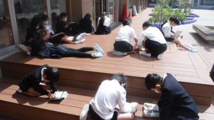 静かな雰囲気で読んでいます。帰りの整列もきれいでした。