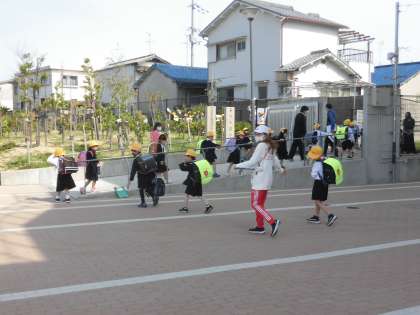 1年生下校 公開日 2021/04/15 更新日 2021/04/15 1年 1年生の下校の様子です。今日からは給食を食べて,5時間授業でした。 おつかれさま。少し疲れが出てくる頃だと思います。 お家でゆっくり休んで,明日も元気に来てくださいね☆