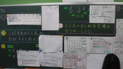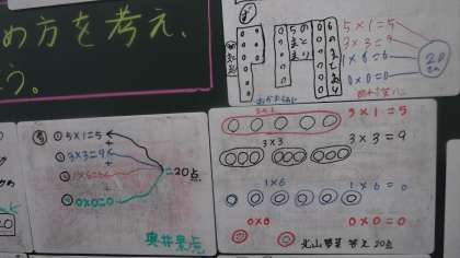 たし算・かけ算・などの考えが出ていました。