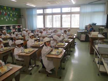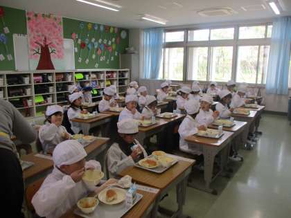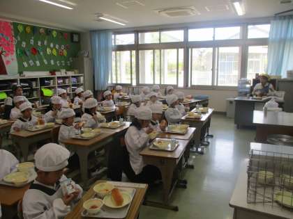 1年生 初めての給食 公開日 2021/04/16 更新日 2021/04/16 1年 今日は,1年生にとって,小学校での初めての給食でした。 給食当番の人は一生懸命運び,当番でない人は静かに待ち,とても素晴らしかったです。 みんなよく食べていて,おかわりをしている子もたくさんいました。 明日からも,おいしい給食を楽しみにしていてほしいです。