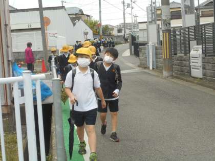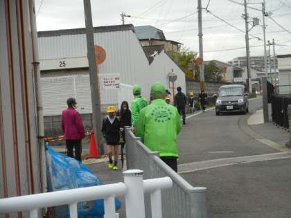 車がすれ違ったりして危険な場面では,見守り隊の方が一旦止まるように指示してくださっています。いつもありがとうございます。
