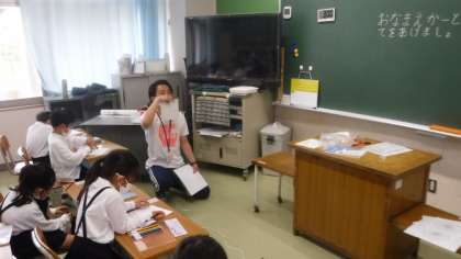 日直カードを書き科ながら,視力検査を実施しています。 落ち着いて行っていました。