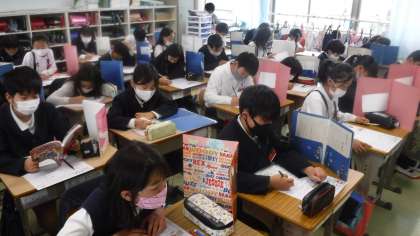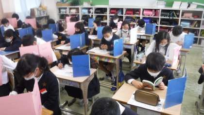 早いもので,もう1つの単元が終わりテストをしています。 落ち着いた雰囲気の中で行っていました。