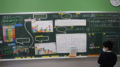 2年4組 算数 公開日 2021/04/16 更新日 2021/04/16 2年 表を見ながら4月生まれと9月生まれの人の数を比べています。 先生が,うなずきながら聞けている子を褒めながら進めていました。
