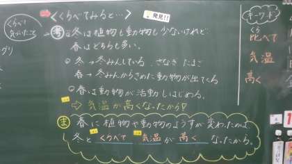 春の特徴について考えています。 冬と比較しながら進めていました。