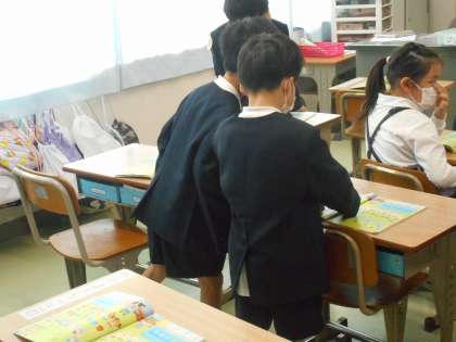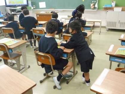 思いついた説明の仕方を,友だちと交流しています。