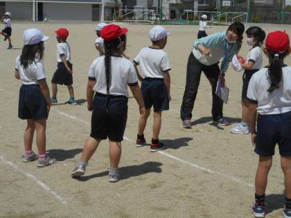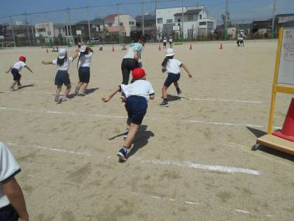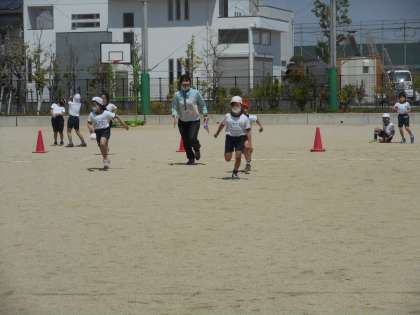 先生も一緒に走って,追う・追われるがうまくいっているのかを確かめています。