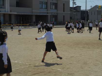低学年の人ですが,ボールを上手に投げていました。今週はいいお天気が続くようです。