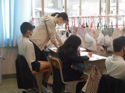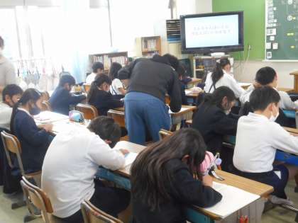 最後に,本当にわかったかどうか,試しの問題に取り組みました。先生たちがノートを見て,○をつけています。