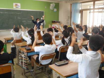 NSの先生と,「I like ・・」をゲームをしながら学んでいました。