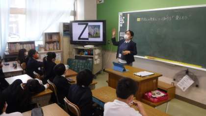 外国語の先生の紹介をしています。 みんな楽しそうでした。