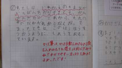 かけ算について,2つの式を1つの式にしようとしています。