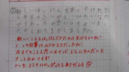 3年3組 算数 公開日 2021/04/22 更新日 2021/04/22 3年 合計56個のイチゴの求め方を考えています。 2年生のときと授業の流れが似ているので,とてもスムーズに考えていました。 先生も赤ペン指導で応えています。