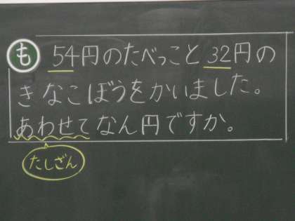 どんな式で答えが求められるのが,問題の中にヒントになる言葉があることをしっかり伝えていました。