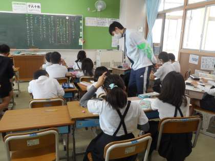 道徳の学習です。どうすればみんなが「ハッピー」になれるかを考えています。
