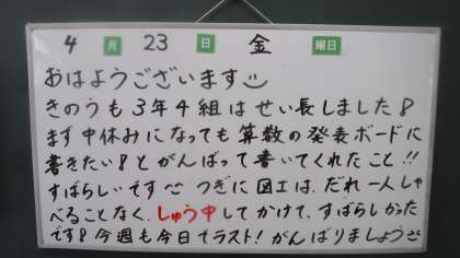 3年生 ホワイトボードのメッセージ