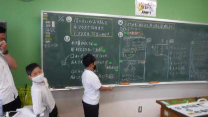 120枚の折り紙を4クラスで分けると,どのようになるのかを考えています。