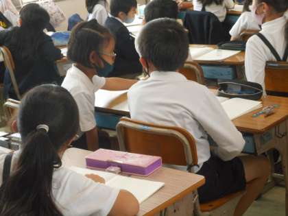 この問題は「ニコニコ」と「ドキドキ」のどちらかを隣の人と話し合っています。何人に分けられるかを求める「ドキドキ」問題だとわかりました。
