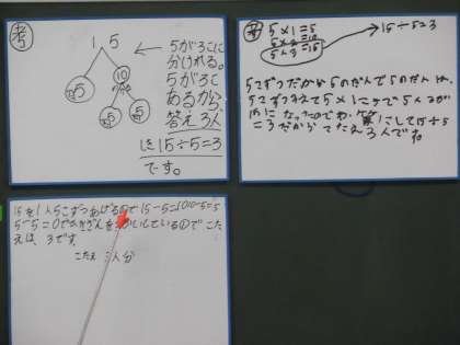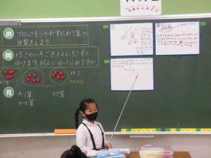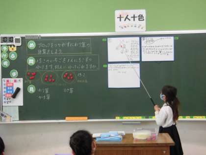 さくらんぼ計算やたし算・ひき算を使って説明していました。