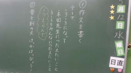 音と訓に気を付けて作文を書き,その作文について先生から講評がありました。