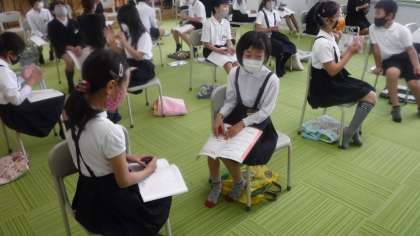 先生が手をあげると,活動を終わる合図であることについても説明がありました。