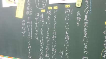 思いやりについて考えています。 子どもたちが考えている「思いやり」が,授業を通して考えることで深まることが大切です。